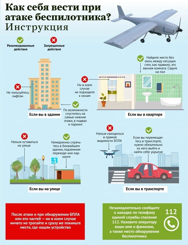 Если вы находитесь в транспорте или на улице при угрозе атаки БПЛА