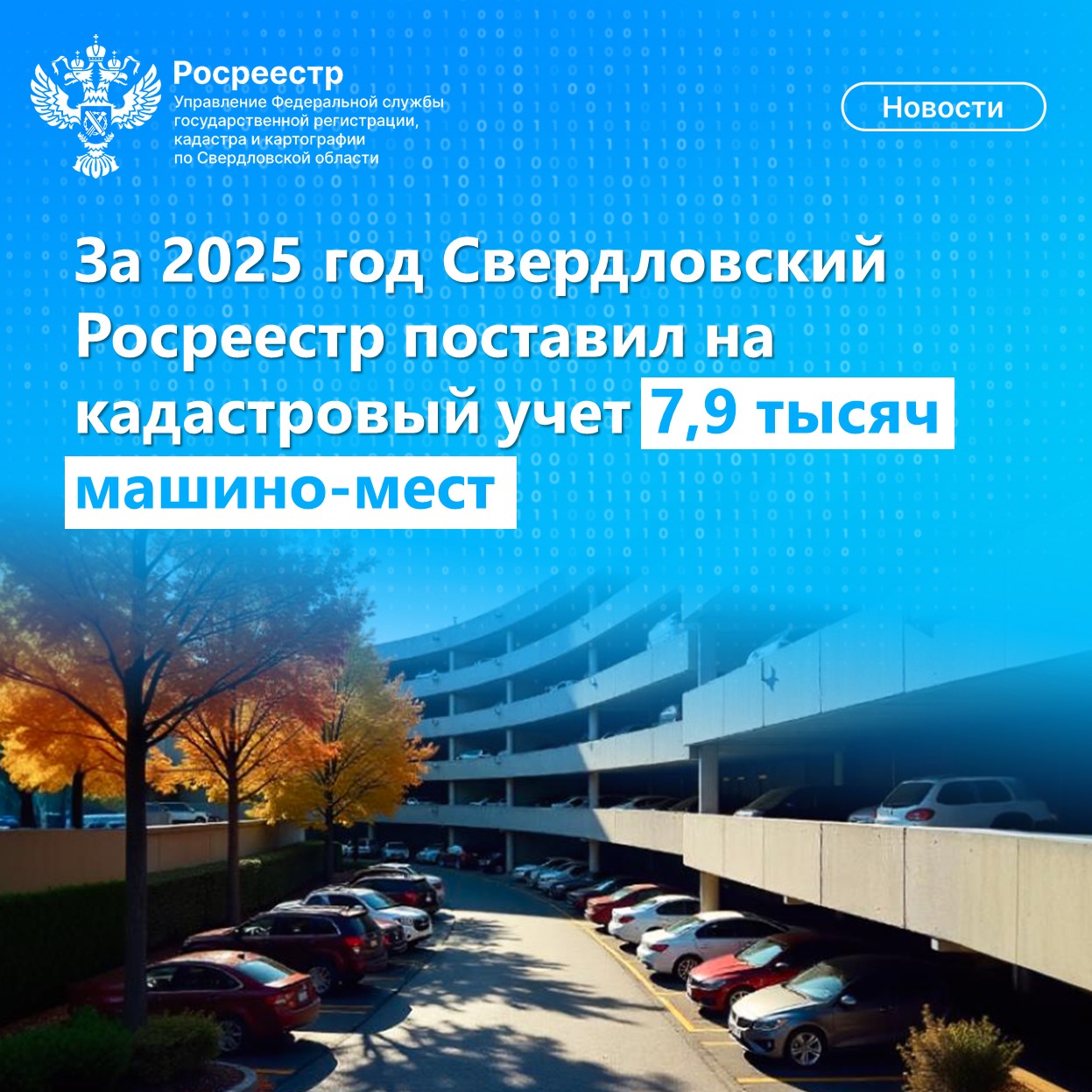 По результатам 2025 года Свердловский Росреестр поставил на кадастровый учет 7941 машино-место.
